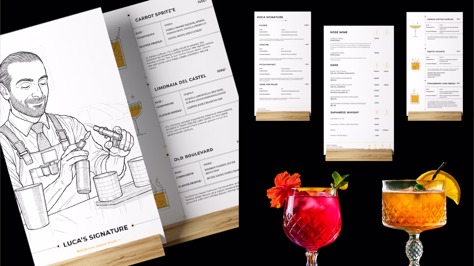 Entering Gurgaon’s dynamic dining scene, KOCA needed a compelling cultural narrative to distinguish itself from other premium restaurants. The challenge was to create a visual language that embodied comfort and sophistication simultaneously, appealing to diverse audiences seeking both celebration and calm. This required building a brand system that could seamlessly integrate into the restaurant’s interiors, menu, communication, and merchandise—ensuring KOCA’s presence extended beyond the dining table and into the lifestyle of its guests.