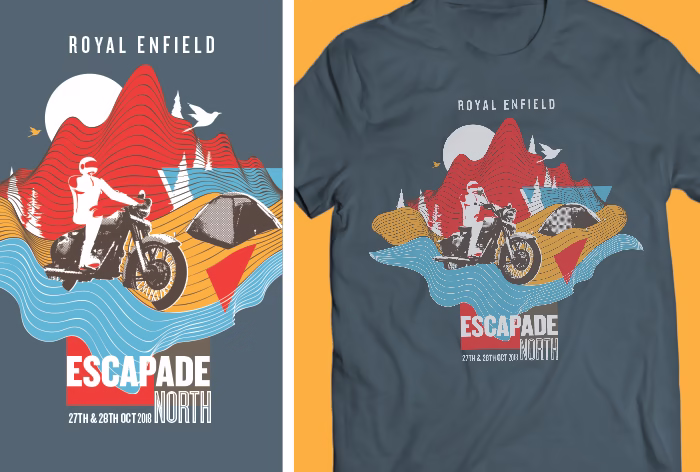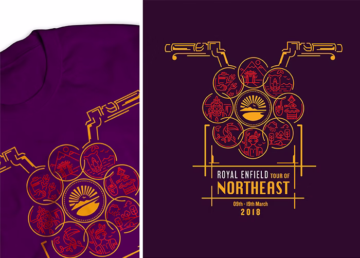 We created T-shirt designs for Royal Enfield's regional and international rides, focusing on relevance and enhancing rider enthusiasm. Each graphic captures the essence of the specific ride, aligning with the brand's adventure and leisure motorcycling spirit